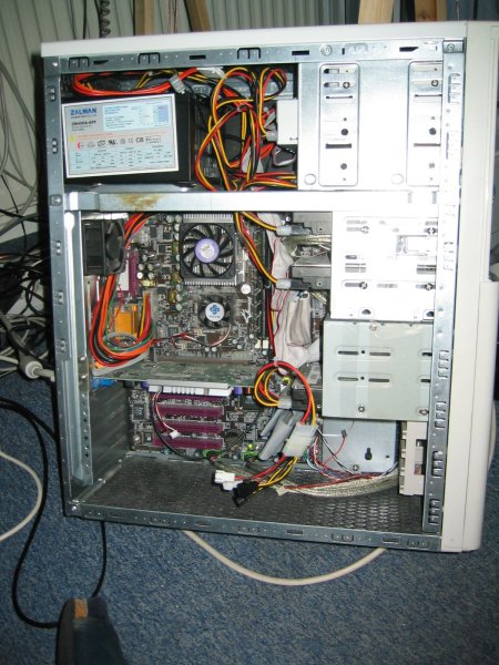 Mittlerweile sind Board, CPU, Ram und CPU-Kühler ausgewchselt worden, und eine Festplatte hinzugekommen.